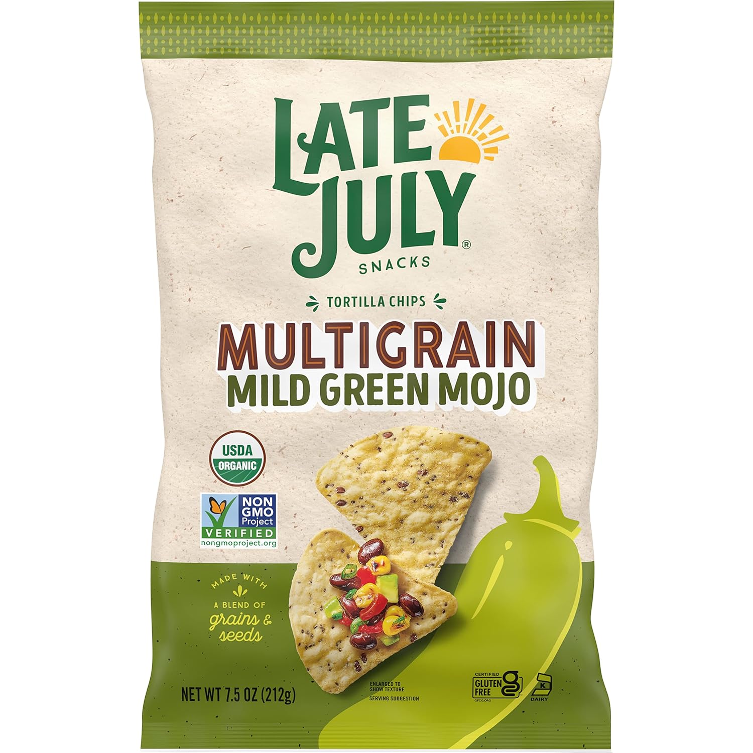 Late July Multigrain Sea Salt & Lime Tortilla Chips Snacks, Made with A Blend of Grains & Seeds, Vegan, Kosher, USDA Certified Organic, Gluten Free & Non-GMO, 7.5 Ounce (Pack of 12)